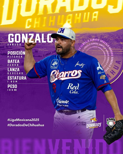 Chihuahua, Chih.- (Prensa Dorados) 11 de octubre 2024.- El relevista mexicano Gonzalo Sañudo llega al equipo de Dorados de Chihuahua como agente libre, en lo que será su sexto equipo en la Liga Mexicana de Beisbol (LMB).